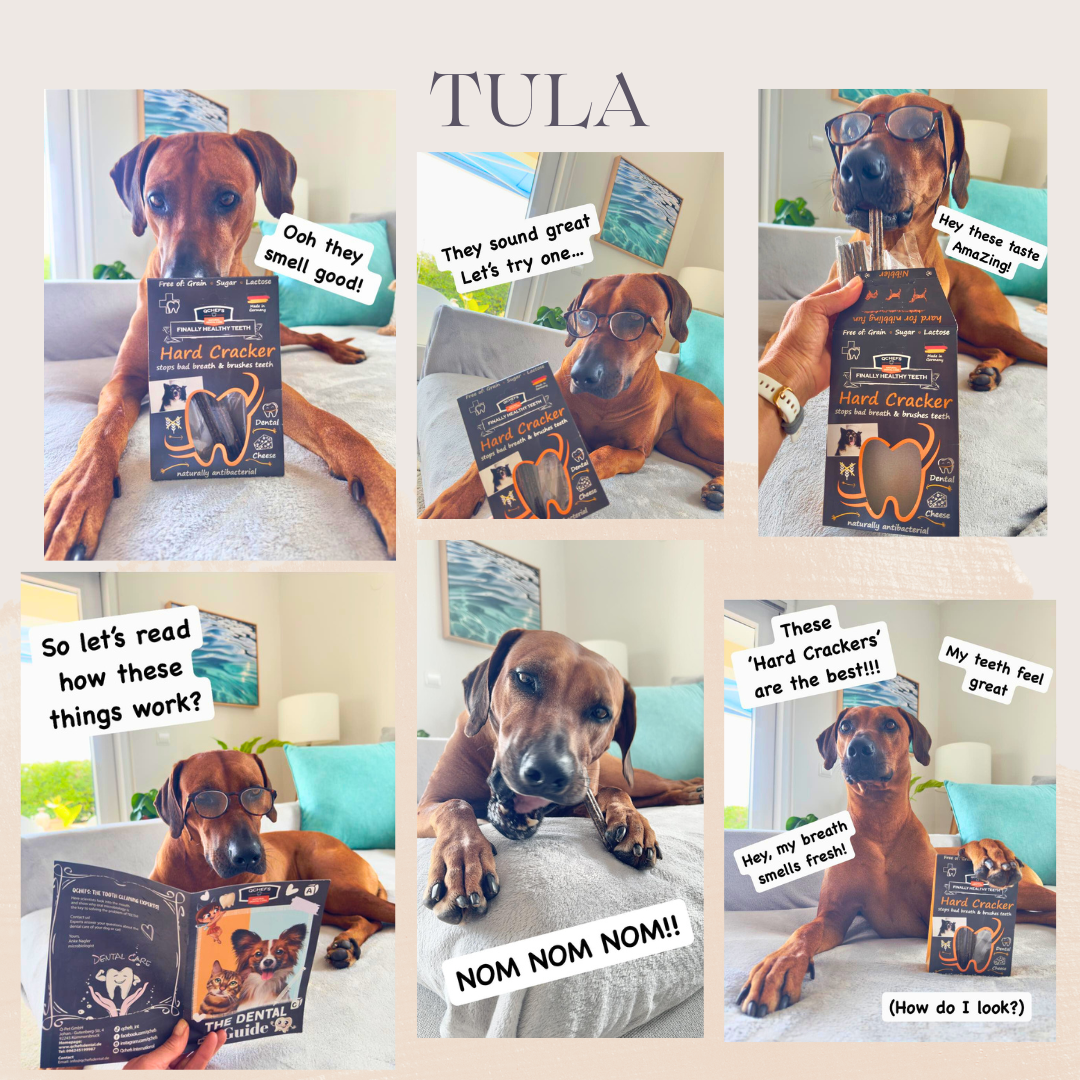 Sem cereais, lactose ou aditivos artificiais. Fácil de digerir e bem tolerado por cães sensíveis. Uma alternativa natural ao cuidado dentário convencional.